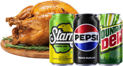 Rebate will be issued as a digital payment only. Get $2.00 cash back after purchasing ONE (1) multipack package across the following brands: PEPSI®, MOUNTAIN DEW®, STARRY®, MUG®, BUBLY®, MANZANITA SOL®, BRISK®, LIPTON®, SCHWEPPES®, CRUSH®, AND ONE (1) qualifying holiday meal item including turkey, ham, chicken & more. Available at retailers in the United States. Limit ONE (1) rebate per customer. Program ends the earlier of 12/31/25 or when 100,000 redemptions have been reached, whichever occurs first. Additional terms apply. All trademarks are the property of their respective owners.