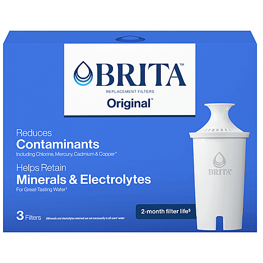 Drink healthier, great-tasting tap water with the Brita Standard Water Filter. This BPA-free Brita water filter cuts the taste and odor of chlorine, plus it reduces copper, cadmium and mercury impurities using ion-exchange resin and activated carbon. Built-in mesh screens on this replacement water filter prevent black flecks in your water filter pitcher, leaving you with great-tasting, clear drinking water. You can replace up to 1,800 standard 16.9-oz. plastic water bottles a year with Brita, so you can stay hydrated, save money and reduce plastic waste. With no presoak required, these Brita filters are quick and easy to install in a Brita filter water pitcher or dispenser. One water filter replacement lasts up to two months or 40 gallons. Brita Standard Water Filters fit in all Brita systems—except Brita Stream—including Brita water filtration pitcher and dispenser models. Get great taste, less waste and more savings from Brita.