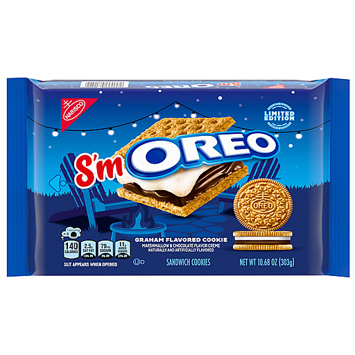 OREO S’mOREO Sandwich Cookies are a unique twist on the classic s'more. These sweet treats feature two scrumptious layers of flavored creme, one marshmallow and one chocolate, sandwiched between two graham-flavored wafer cookies, making them a wonderful summertime treat. These decadent cookies are great snacks for sharing with friends, enjoying with a glass of ice-cold milk, or serving at your next party, picnic, or BBQ. OREO cookies also make great on the go snacks and office snacks. You even can use these yummy and fun cookies to play a “Guess the Flavor” party game with friends and family! The resealable pack with easy-pull tab keeps these sweet treats fresh so they're ready for snacking, sharing, or traveling. Enjoy another delicious twist on America’s Favorite OREO cookie taste and a great alternative to traditional s'mores with OREO S’mOREO Sandwich Cookies!