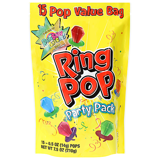 Ring Pop is the ultimate iconic wearable lollipop hard candy with an eye-catching candy gem that is deliciously playful. This hard candy is adored by kids and adults which makes it perfect for sharing with kids, family and friends. Kids enjoy sharing and wearing their favorite candy gem with friends because hangouts are way more fun with Ring Pop! Perfect for sharing at birthday parties, party favors, bachelorette parties, and almost any special occasion.