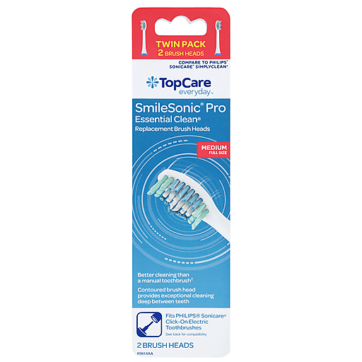 Top Care Replacement Smile Sonic Pro Medium Full Size Twin Pack Brush Heads 2 Ea